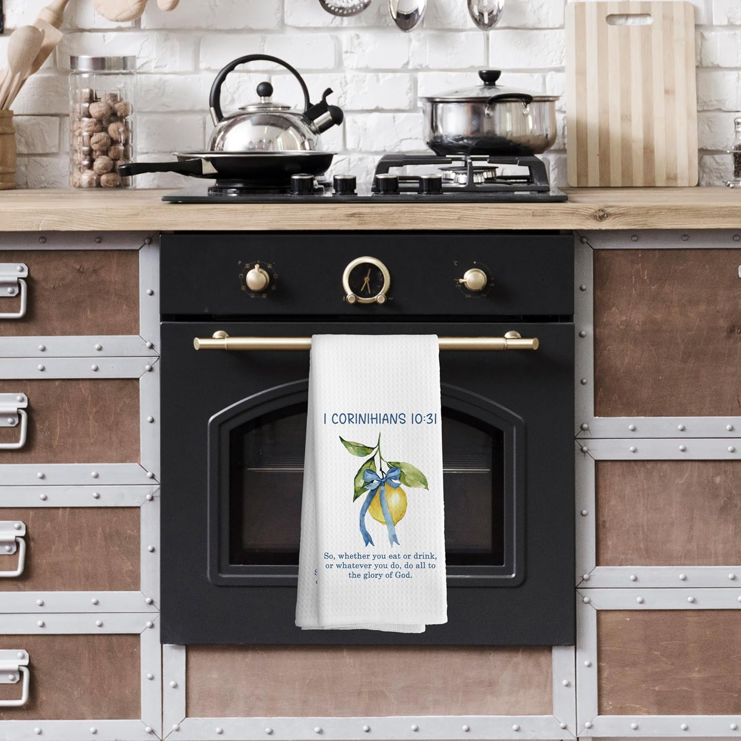 Christian Bible Verse Kitchen Towels Decor, Coquette Preppy Dish Towel 16x24 Inches, Christian Gifts for Women, Lemon Decorative Absorbent Dishcloths Hand Tea Towels for Kitchen Decor